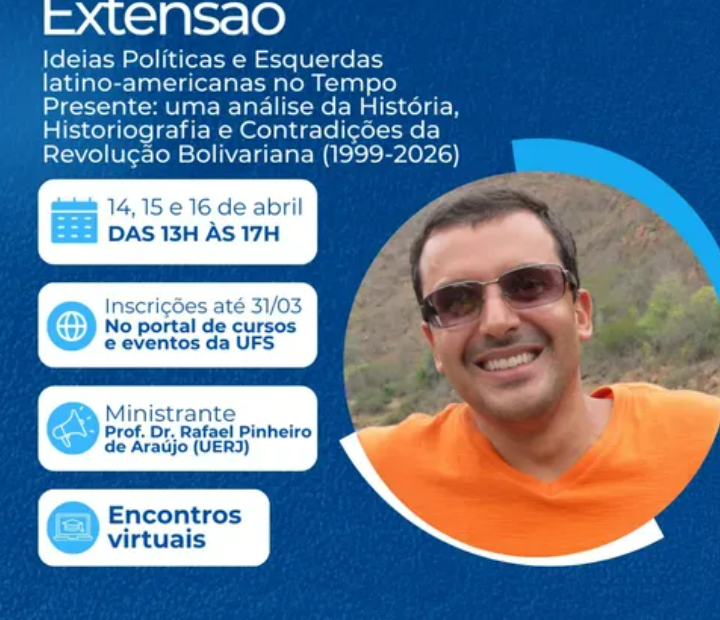 O Curso de Extensão Ideias Políticas e Esquerdas latino-americanas no Tempo Presente: uma análise da História, Historiografia e Contradições da Revolução Bolivariana com o Prof.… Continue a ler »Curos de Extensão: ideias políticas e esquerdas latino-americanas no Tempo Presente